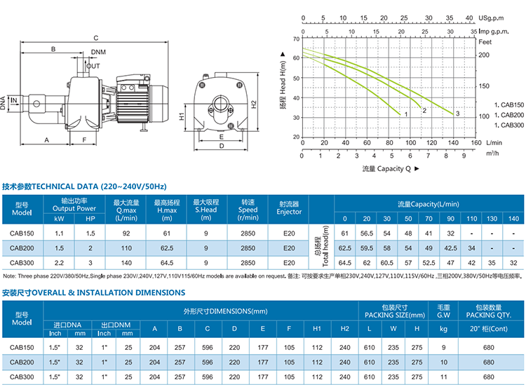 Single phase 230v,240v,127v,110v,115v/60hz models are available on request.