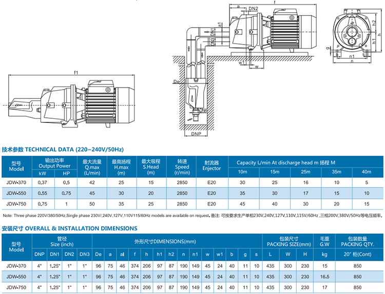 Single phase 230v,240v,127v,110v,115v/60hz models are available on request.