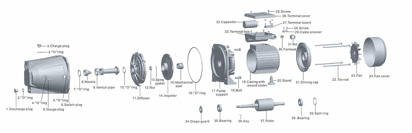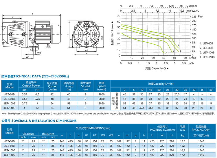 JET-B series cast iron self-priming pumps are mainly used to transfer clean water and other liquid which is similar with water character.It is suitable for industrial and urban water supply,pressurre rise to high building,garden irrigating,long distance water transfer and relevant equipment ect.