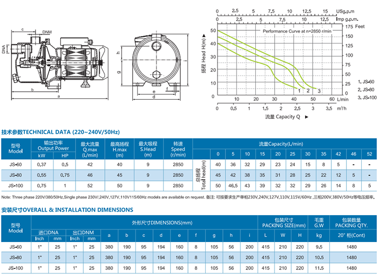 | Impeller | Brass/Stainless Steel/Techno-polymer(P.P.O) |
