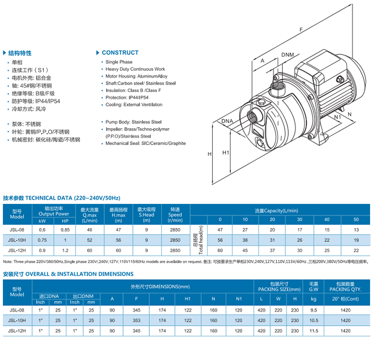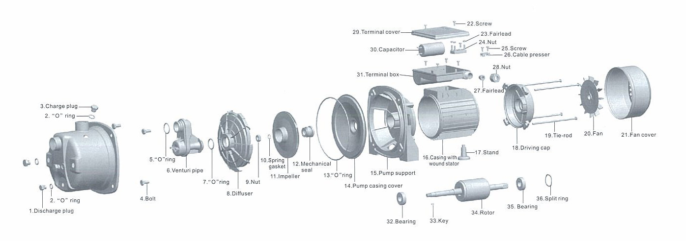 | Impeller | Brass/Stainless Steel/Techno-polymer(P.P.O) |
