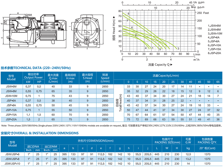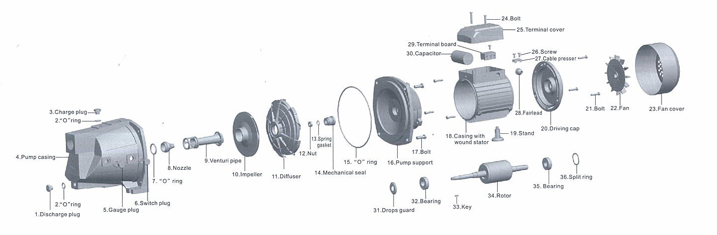 | Impeller | Brass/Stainless Steel/Techno-polymer(P.P.O) |